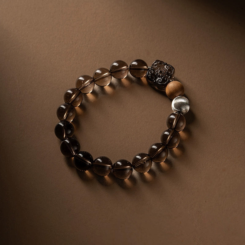 The Feather Guardian Bracelet is crafted from Ice Obsidian and Old Mountain Sandalwood, offering a soothing and balanced sensory experience. The clear luster of Ice Obsidian resembles the purity of nature's ice, while the rich fragrance of Old Mountain Sandalwood brings calmness and stability. The design elegantly combines these natural elements with 925 silver, creating a refined and elegant piece. Each bead, crafted from natural materials, is meticulously polished to provide the wearer with inner peace and balance. Wearing this bracelet feels like being protected by nature and connected with your inner self, offering warmth and strength.