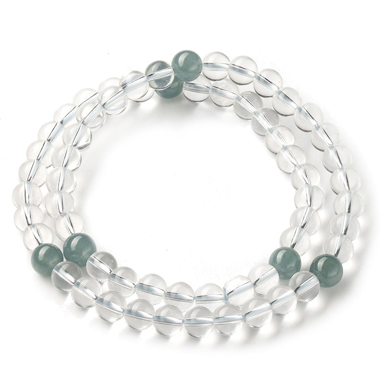 "The green beads and sparkling crystal create a fresh, elegant look. Perfect for everyday wear, it adds a subtle touch of sophistication to any outfit. Simple yet charming, it effortlessly enhances your style."
