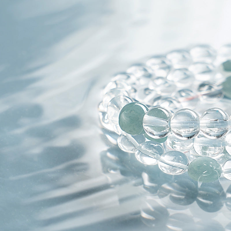 The LUMERA Pure Bracelet is meticulously crafted from Guatemalan jade and natural clear quartz, embodying the harmonious beauty of nature and elegance. The jade reveals a delicate bluish-green hue, serene and pure like still lake waters, symbolizing stability and peace. The quartz sparkles with crystalline clarity, representing purity and vitality. Together, they bring calmness to the mind and refresh the spirit with gentle energy. More than just a fashion accessory, this bracelet is a personal talisman of balance and protection.